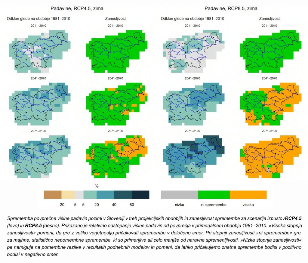 - Predvideno je opazno povečanje padavin pozimi. Povečala se bo tudi jakost in pogostost izjemnih padavin.